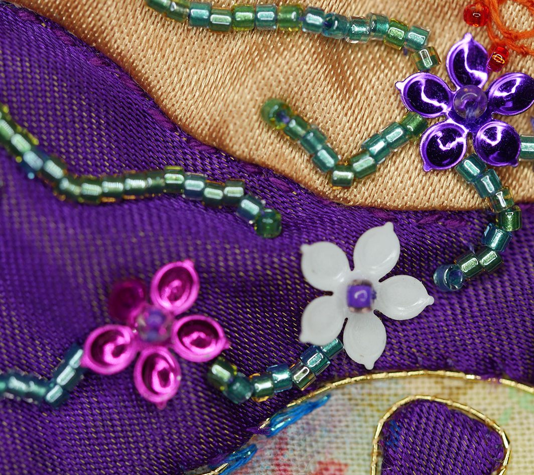 Shapes – simple or detailed shapes – embellished, painted, stitched and appliqued onto a background to suit the subject.